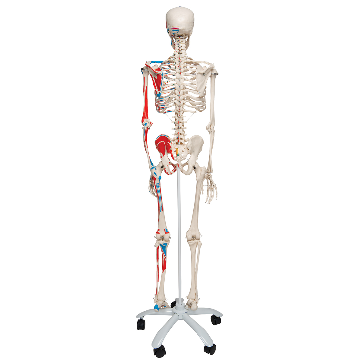 The ZTC-016: Colored Human Skeleton with enthesis of half muscles is crafted using top-quality natural casting and assembled by hand for high anatomical accuracy. Made from durable, unbreakable synthetic material, it closely matches the realistic weight of approximately 200 human bones. The model is anatomically correct, life-size, and ideal for medical training, laboratory studies, and classroom demonstrations.